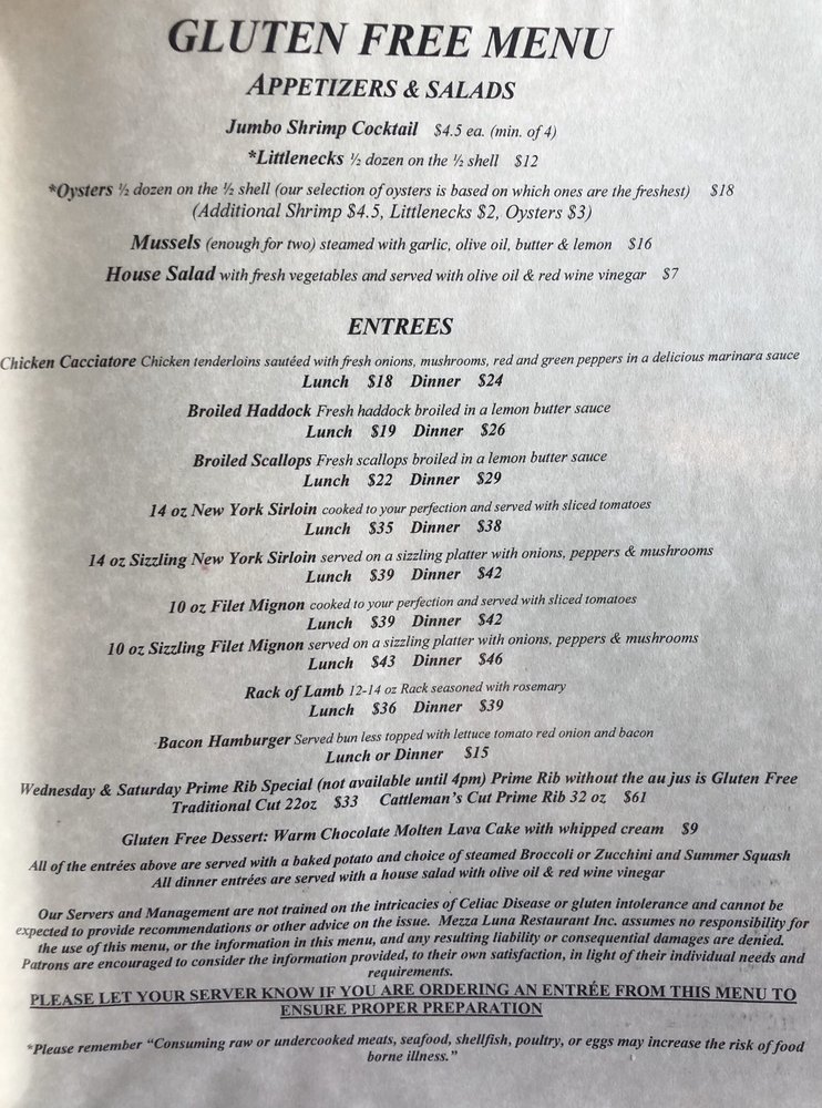 With a charming atmosphere reminiscent of classic Italian-American eateries, Mezza Luna provides a comfortable dining experience for all. The attentive staff, led by waiter Chris, ensure a seamless meal from start to finish. From the freshly baked bread to the tantalizing Grapenut pudding, each dish is prepared with care and precision, leaving diners satisfied and eager to return. Experience the taste of Italy at Mezza Luna, where every bite tells a story of culinary excellence and tradition.